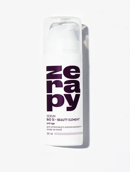 Сыворотка БИО Si – Бьюти элемент Zerapy — профессиональный уход для домашнего использования с органическим кремнием в биологически активной форме (силанолы) и ретиналем. Обеспечивает восстановление структуры кожи, повышение упругости и глубокое увлажнение, борется с морщинами, заломами и признаками птоза.